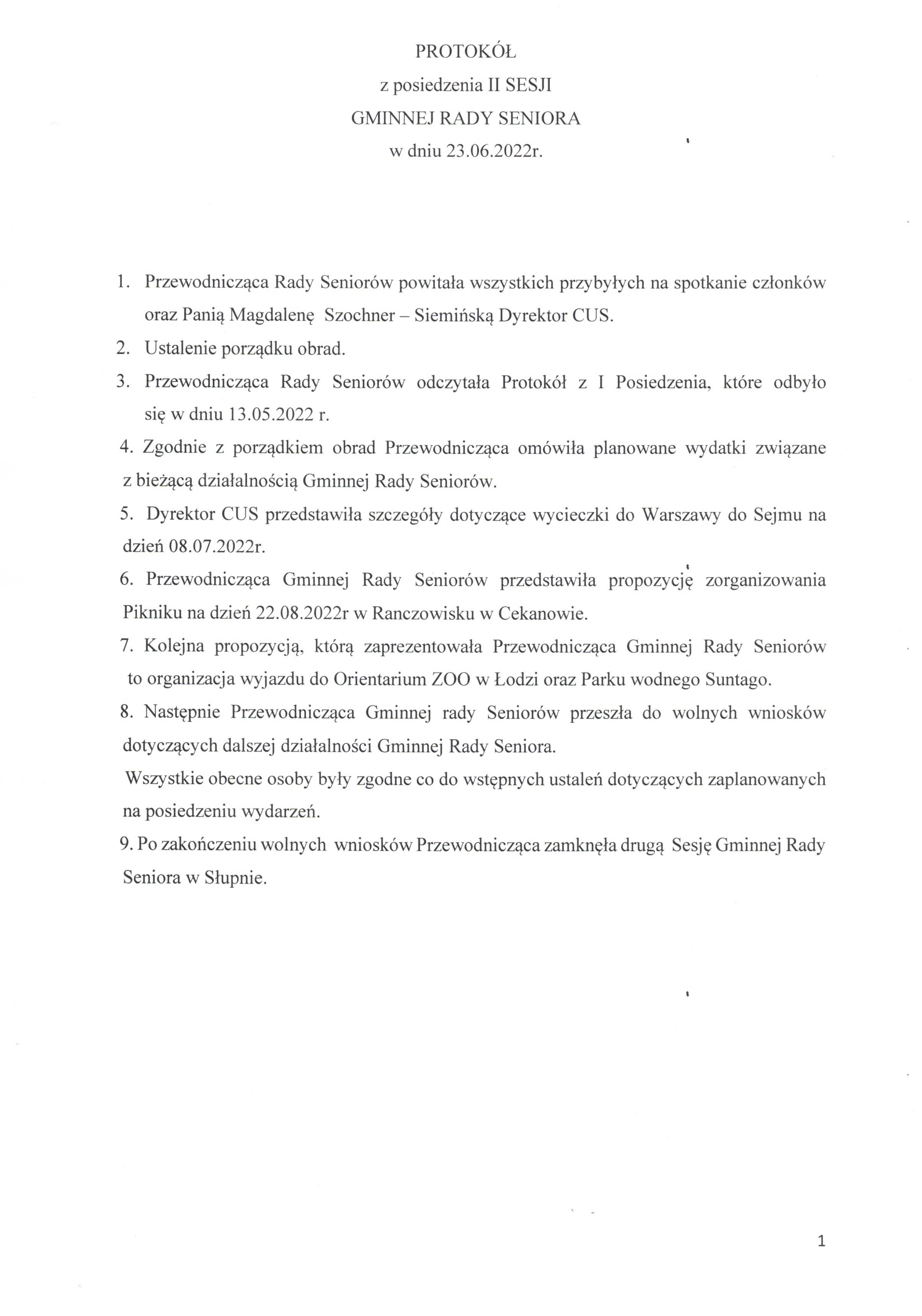 Jesteś tutaj: Start / Gminna Rada Seniorów / Protokoły / Protokół z posiedzenia II Sesji Gmnnej rady Seniorów z dnia 23.06.2022 r.