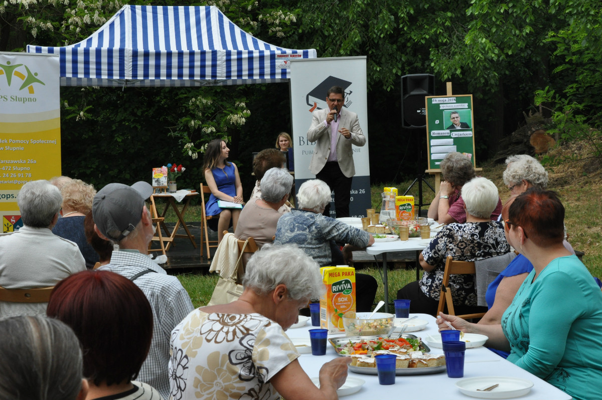 W środę 16 maja Gminna Biblioteka Publiczna w Słupnie oraz Gminny Ośrodek Pomocy Społecznej w Słupnie zorganizowały spotkanie autorskie z Romanem Czejarkiem – dziennikarzem, radiowcem, pisarzem, publicystą ale także i konferansjerem.