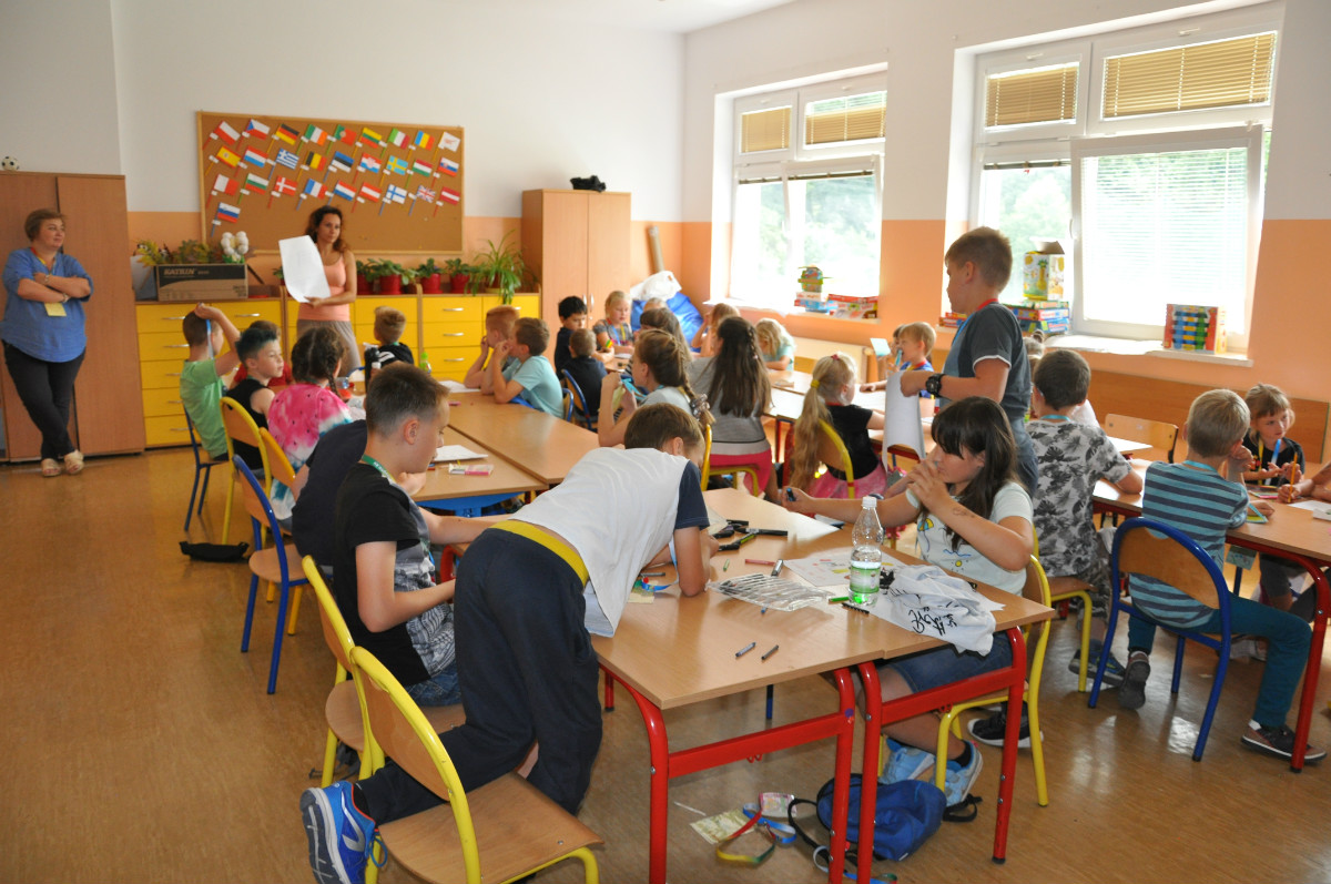Wolontariusze Gminnego Ośrodka Pomocy Społecznej w Słupnie realizując projekt "Jestem Europejczykiem - kreatywnym podróżnikiem" włączyli się do półkolonii organizowanych przez Gminny Ośrodek Kultury Słupno z/s w Cekanowie.