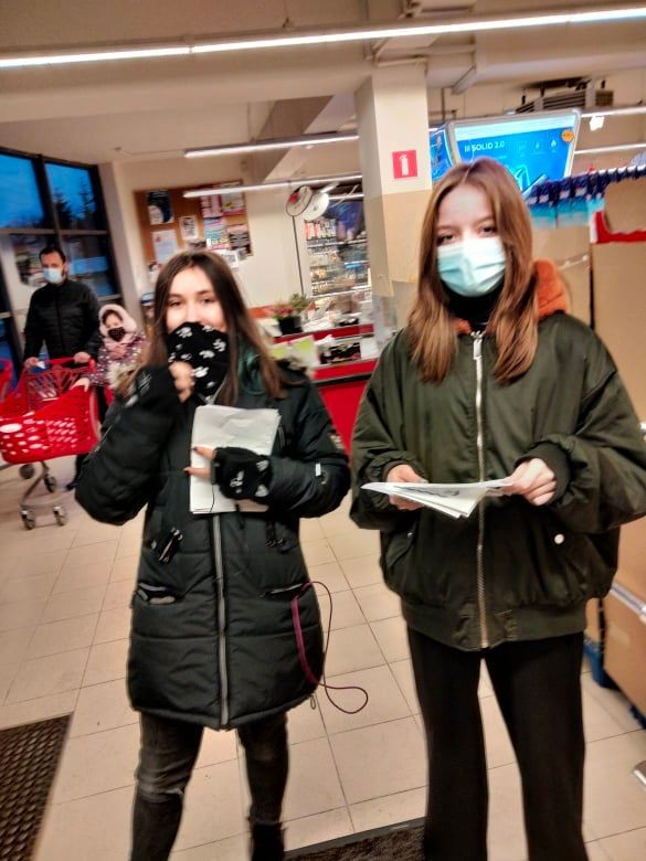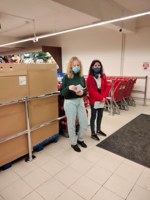 Wolontariusze podczas zbiórki artykułów spożywczych pn. "WOLONTARIAT CODZIENNY"