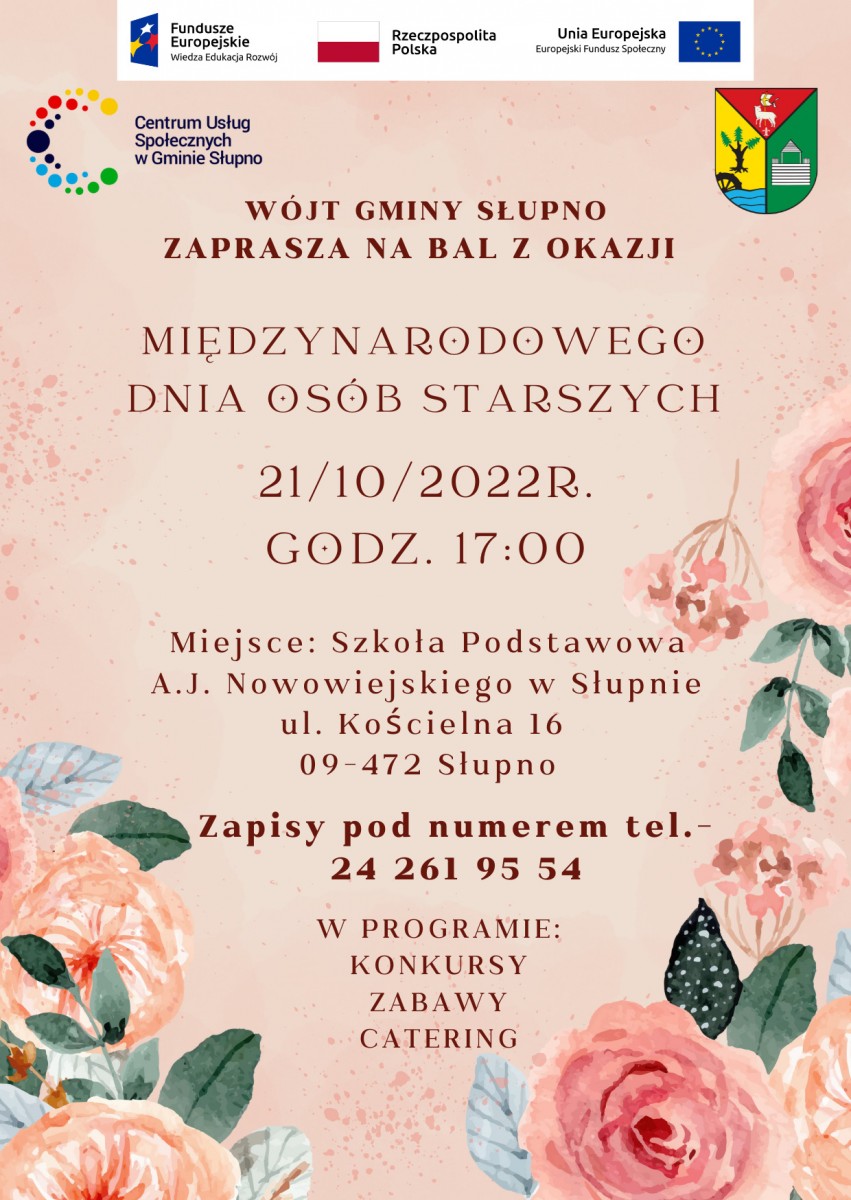 Wójt Gminy Słupno zaprasza na bal z okazji Międzynarodowego Dnia Osób Starszych.