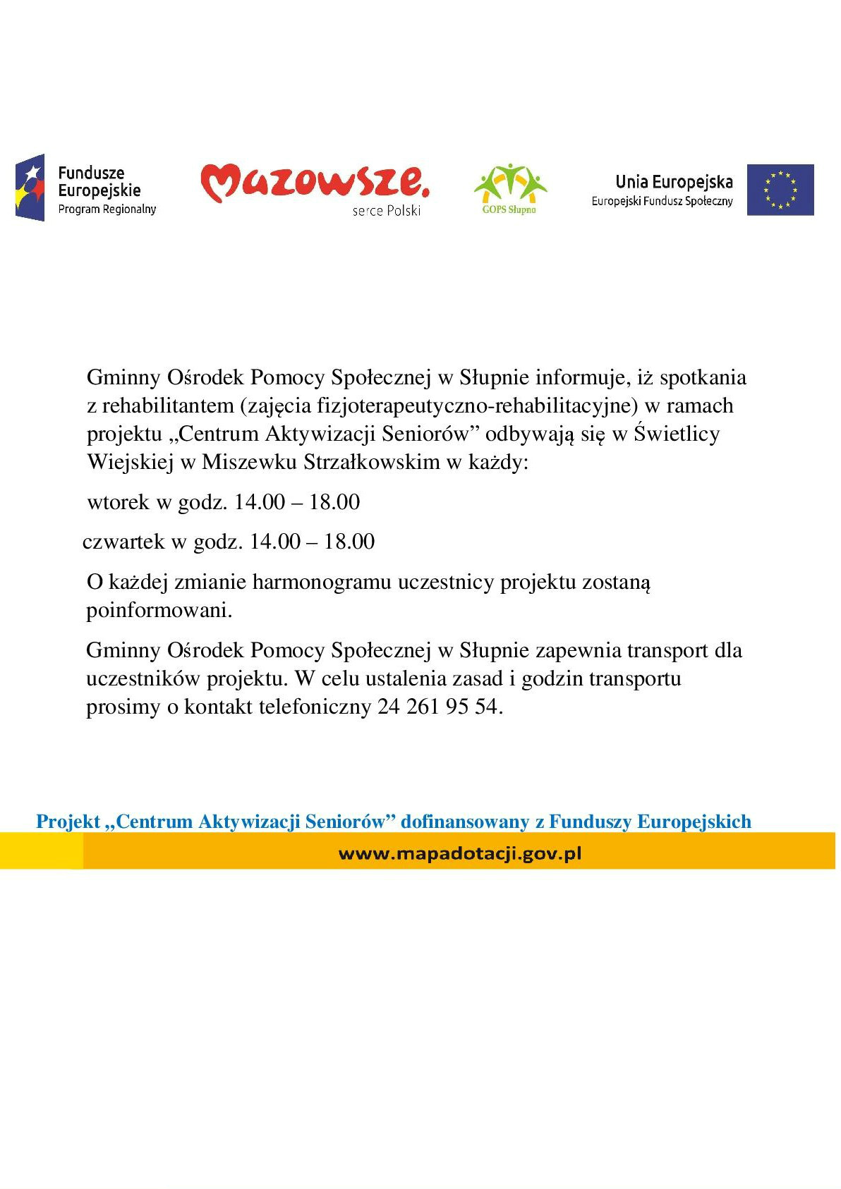 Informacja dotycząca realizacji projektu "Centrum Aktywizacji Seniorów". Spotkania z rehabilitantem.