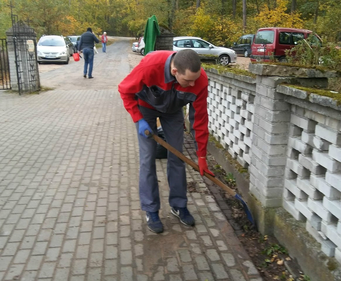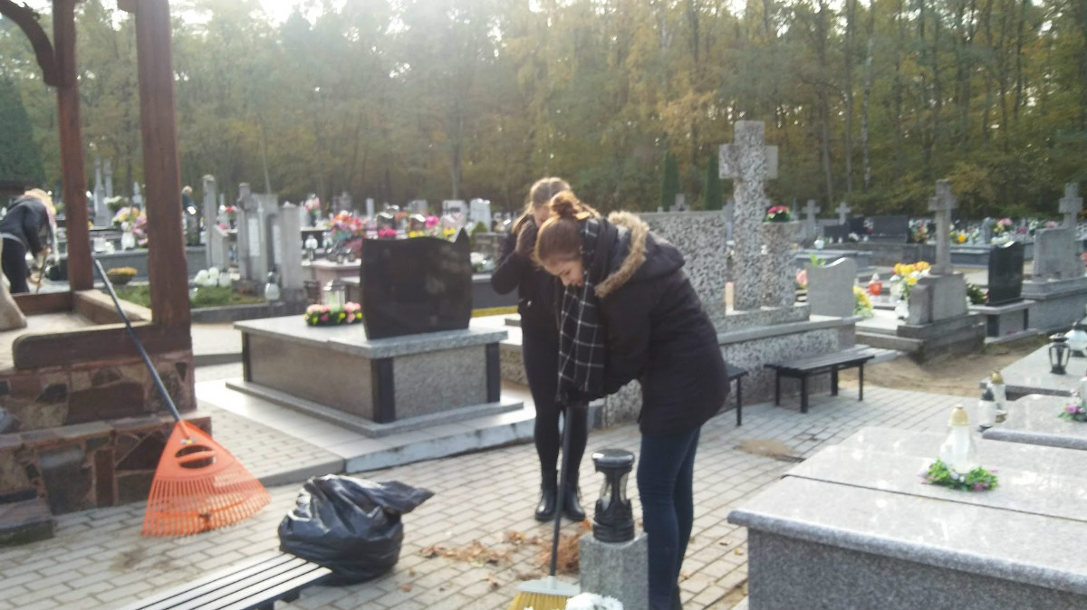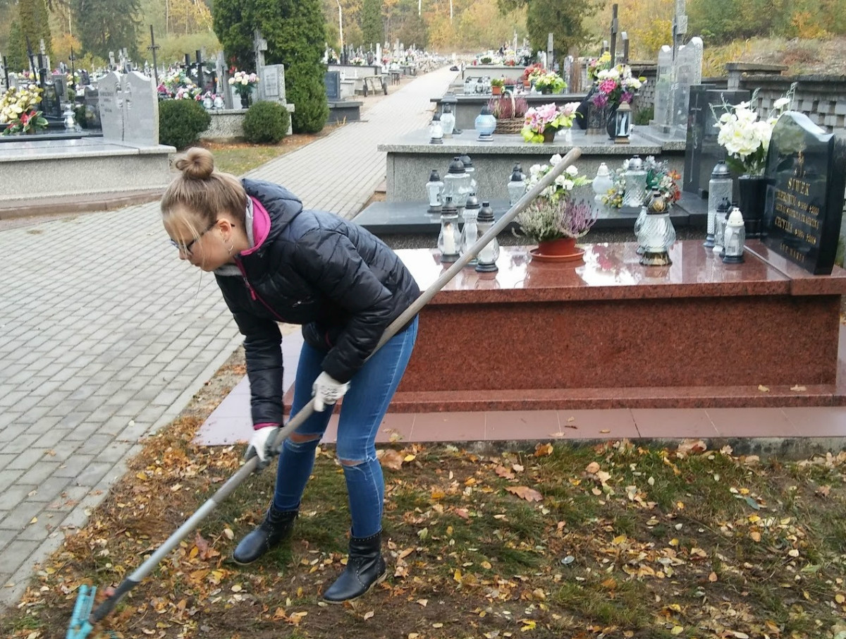 Sprzątanie cmentarza w Słupnie przez wolontariuszy.