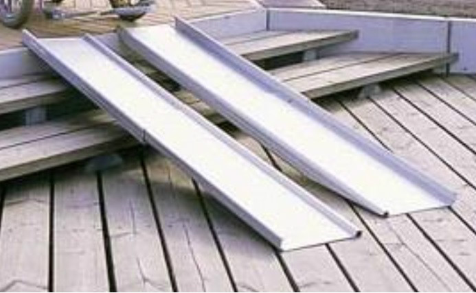 Rampa aluminiowa teleskopowa Rampa przeznaczona jest jako pomoc przy pokonywaniu schodów . Służy jako podjazd na schodach. Ułatwia codzienne funkcjonowanie , umożliwiając pokonywanie niemal każdego progu.