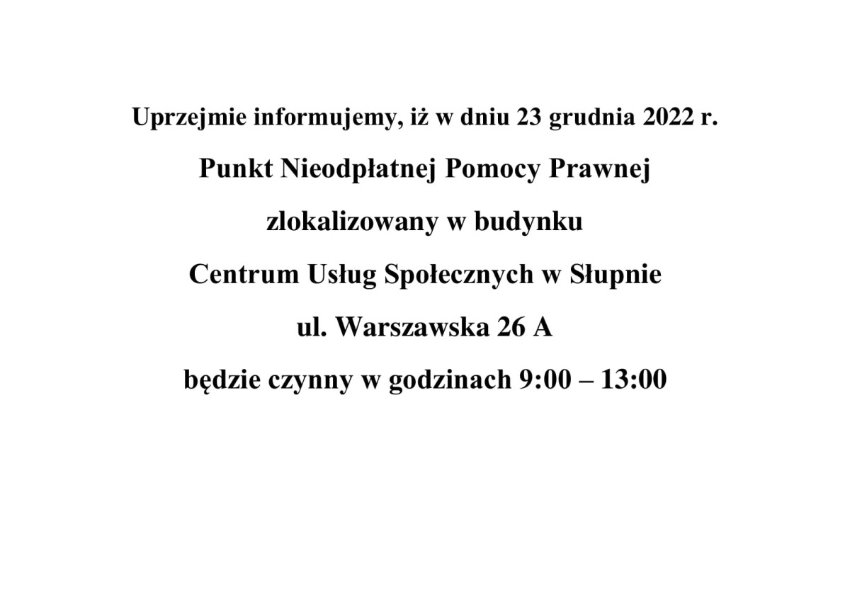 KOMUNIKAT dotyczący nieodpłatnej pomocy prawnej.