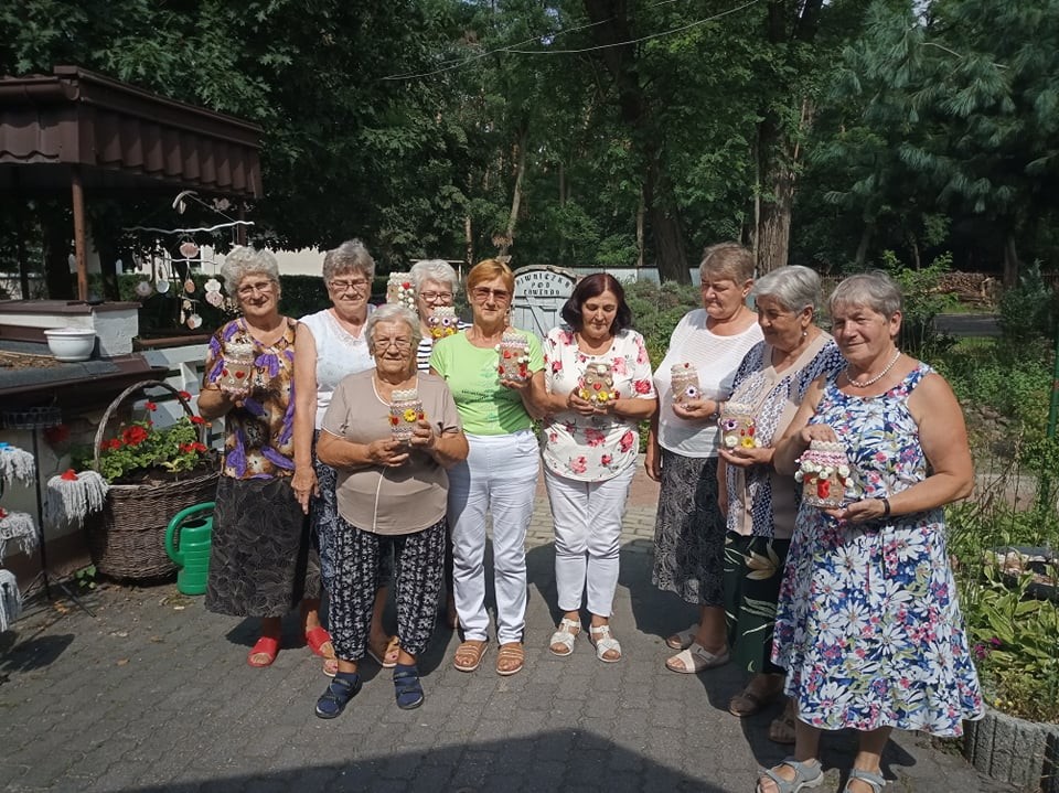 Dekoracyjne słoiki w wykonaniu Seniorek w ramach projektu „Centrum Rozwoju Seniora”.