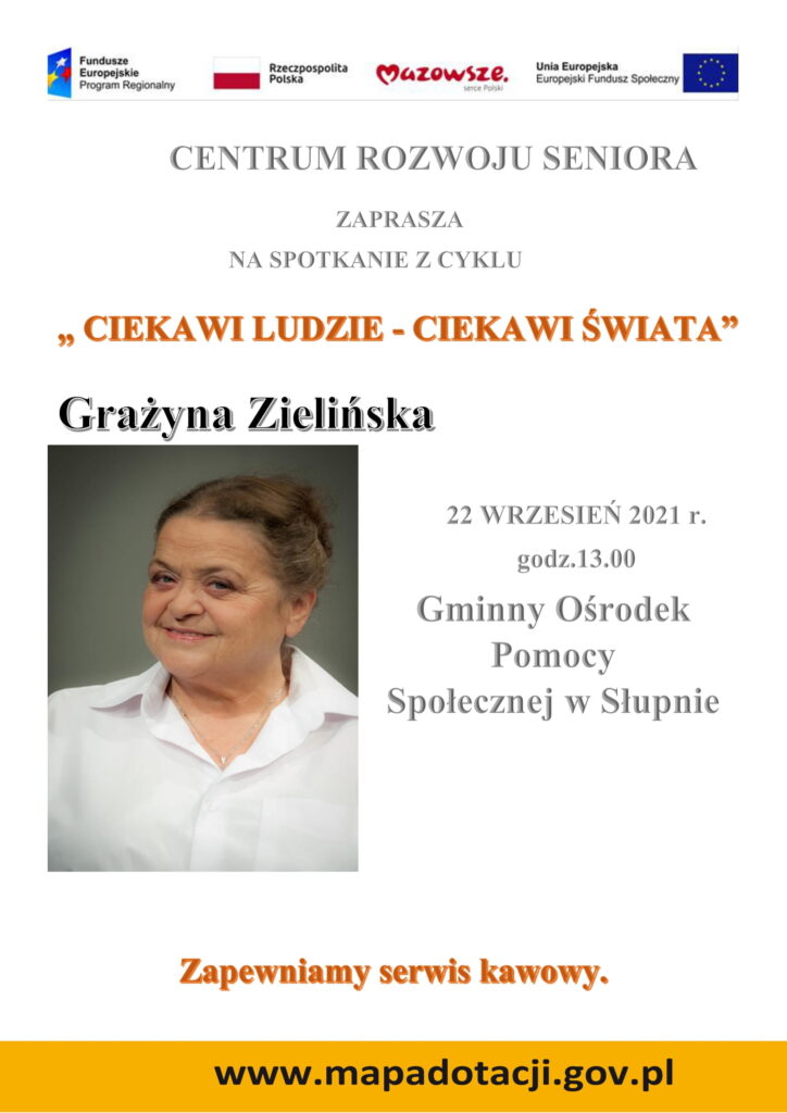 W dniu 22 września 2021 roku o godz. 13.00 odbędzie się spotkanie z cyklu „Ciekawi Ludzie – Ciekawi Świata” w ramach projektu „Centrum Rozwoju Seniora”